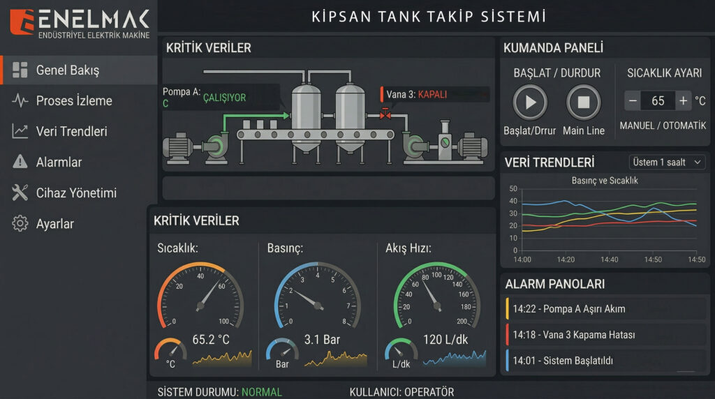 Kullanıcı Dostu Arayüz (UI/UX): Operatörlerin kolayca anlayabileceği, göz yormayan, ergonomik ve modern ekran tasarımları.